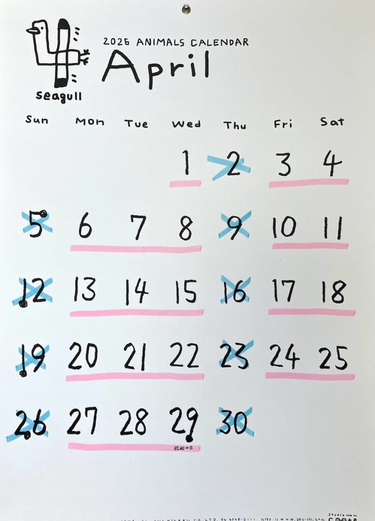 それでは4月の営業日のお知らせです。